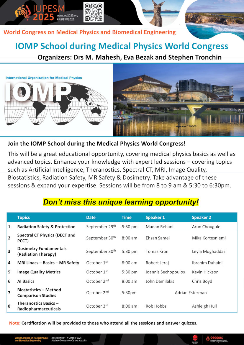 Join IOMP School Sep 29 to Oct 3 at IUPESM 2025, Australia