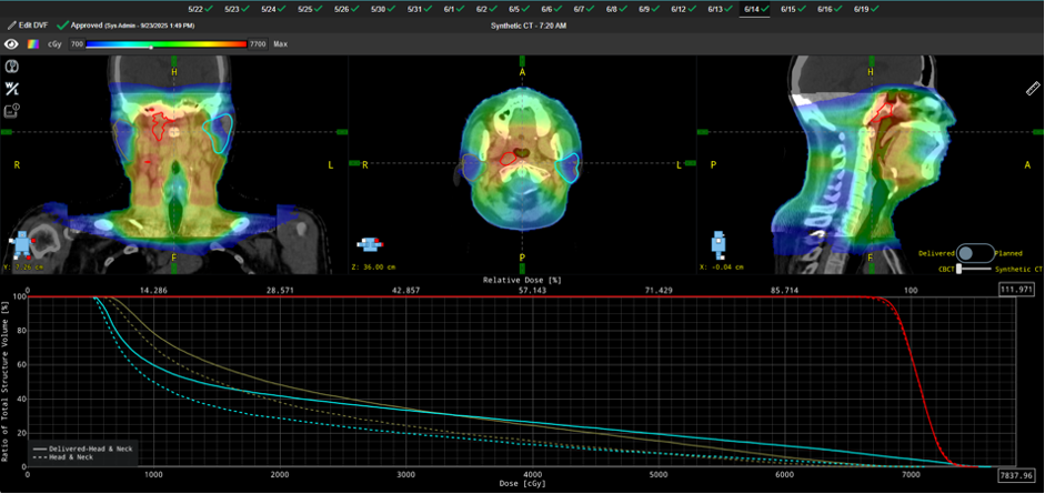 The result: systematic decision support based on objective dosimetric criteria rather than subjective visual assessment alone. Clinicians receive a complete view of both fractional and cumulative dose assessment, enabling confident, data-driven replanning decisions while maintaining clinical efficiency throughout the treatment course.