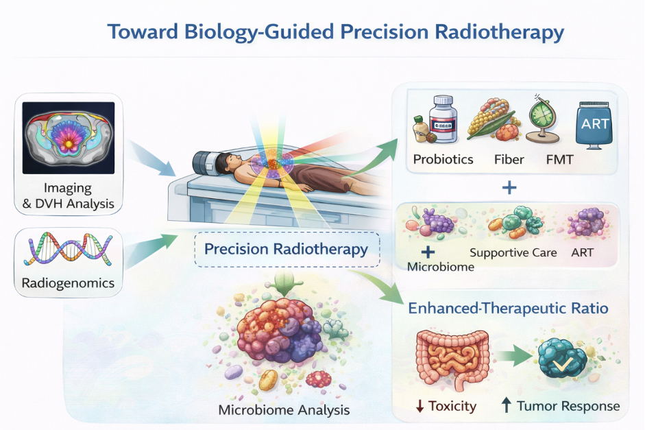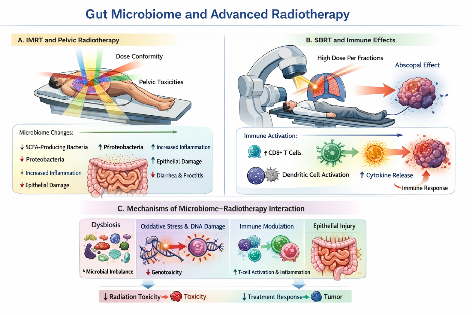 The gut microbiome is emerging as a significant biological determinant of radiotherapy response and toxicity, particularly in IMRT, SBRT, and pelvic radiotherapy. While advanced technology has optimized physical dose delivery, biological heterogeneity continues to shape clinical outcomes. Integrating microbiome science into radiation oncology offers a promising pathway toward truly personalized radiotherapy where physics and biology work in harmony to improve patient care.
