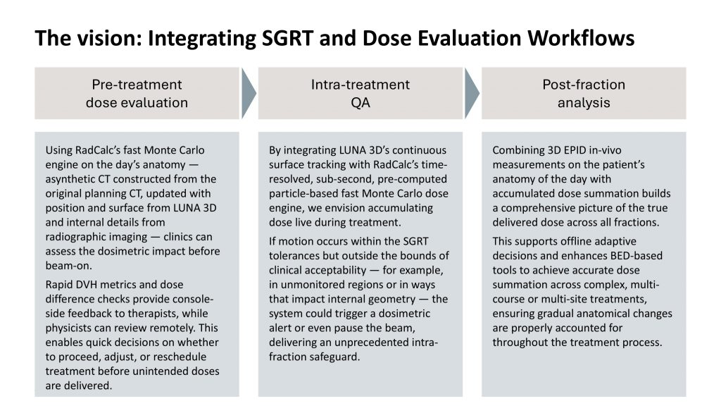 RadCalc’s future centers on combining SGRT and adaptive QA through three key workflows, as shown in the vision presented in Figure 1.